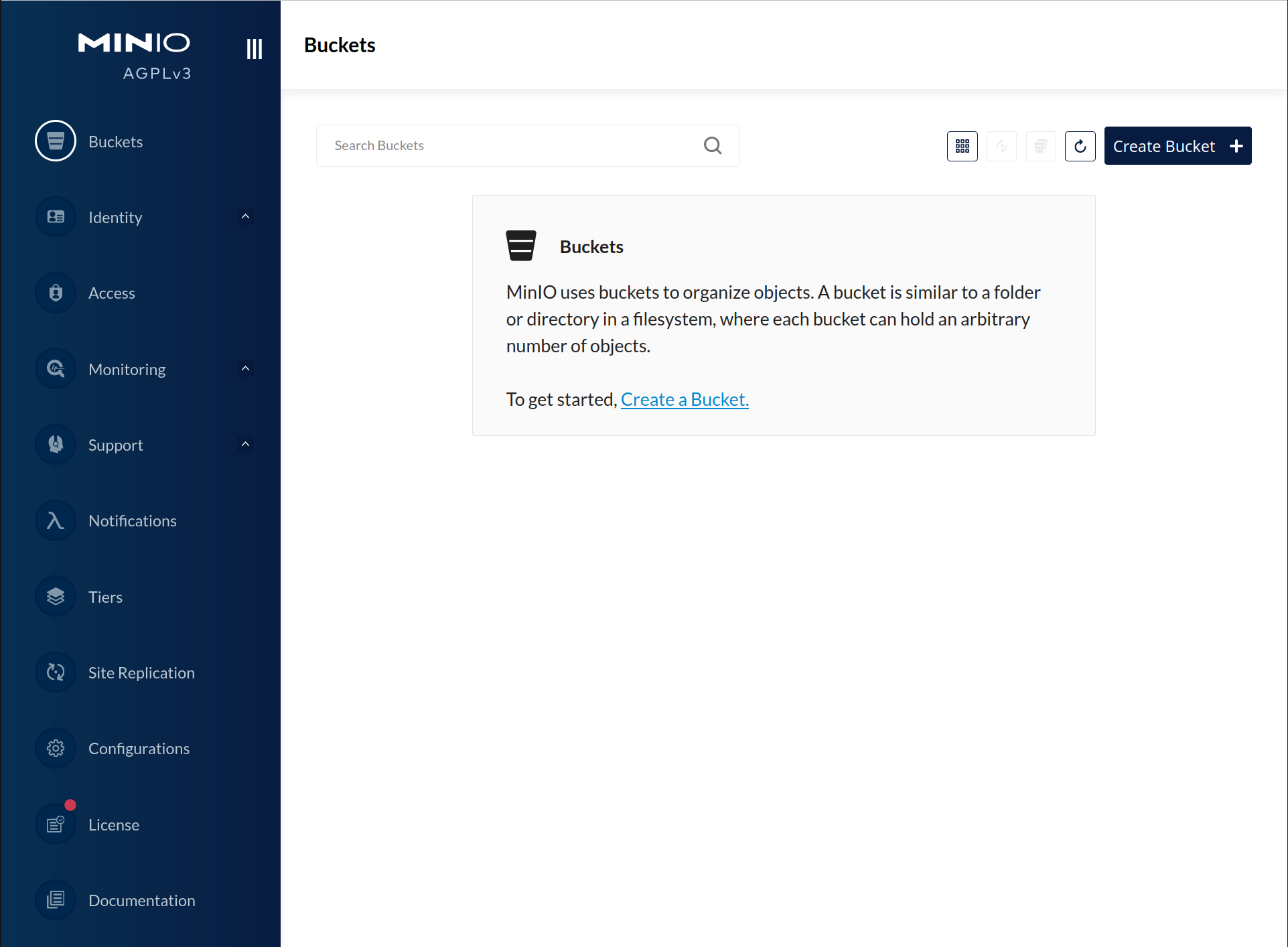 您可以通过在首选浏览器中输入 http://localhost:9001 来访问MinIO Web控制台。 任何对本地主机上的MinIO控制台端口的流量都将重定向到容器。